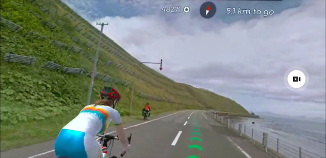 ゴールに近くなるにつれていろいろ貴重なシーンが写り込みます。これは自転車仲間ですね。私はVRなので声がかけられないのが残念ですが、やはりかなりの親近感があったことは確かです。